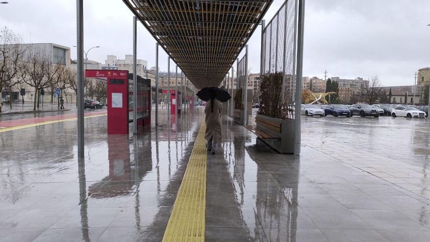 Paraguas y goteras bajo las pérgolas de dos millones de euros que deben proteger de la lluvia y el frío en León