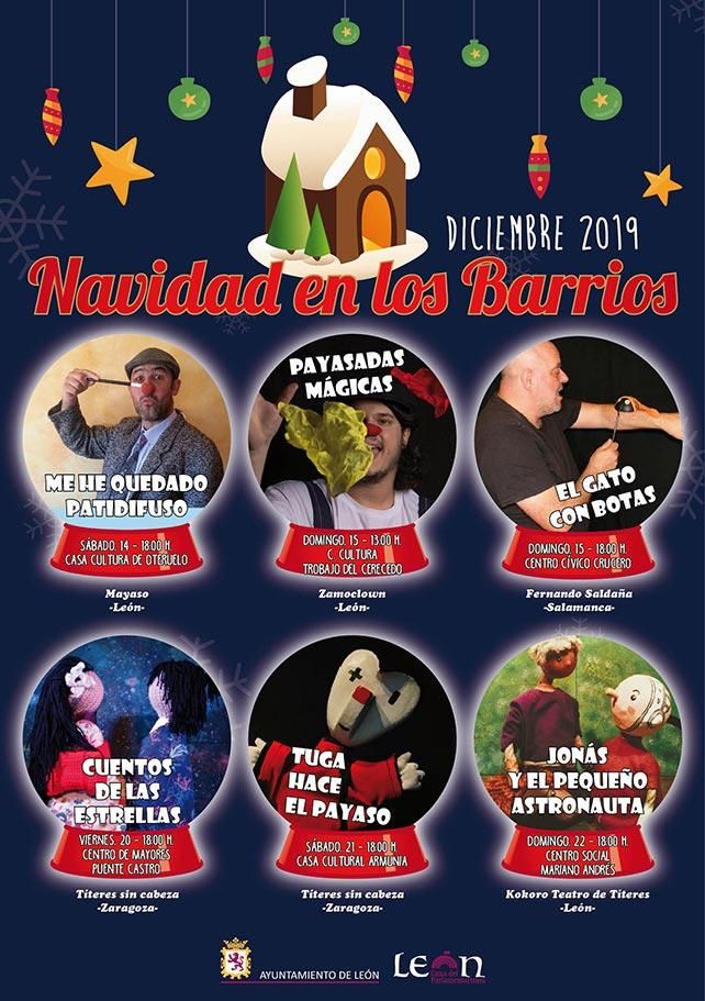 El Ayuntamiento de León, a través de la Concejalía de Acción y Promoción Cultural, ha organizado la actividad 'Navidad en los barrios', que llevará a diferentes zonas del municipio seis espectáculos gratuitos para todos los públicos.