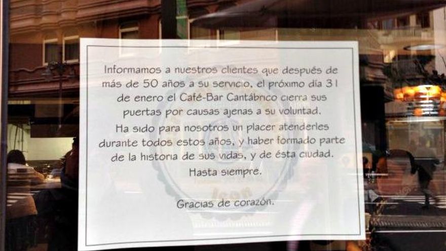 En un anuncio la familia propietaria comunicaba su adiós de una forma muy emotiva: “Informamos a nuestros clientes que después de más de 50 años a su servicio, el próximo 31 de enero el Café-Bar Cantábrico cierra sus puertas por causas ajenas a su voluntad. Ha sido para nosotros un placer atenderles durante todos estos años, y haber formado parte de la historia de sus vidas, y de esta ciudad. Hasta siempre. Gracias de corazón”.