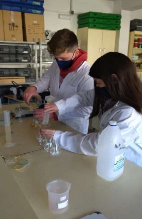 Como auténticos científicos, los alumnos del IES Ximén d'Urrea realizaban experimentos sobre el cambio climático
