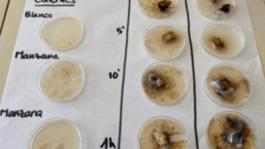 Muestras de manzana contaminada obtenidas por el grupo Las Cien, del IES Bernat de Sarriá.