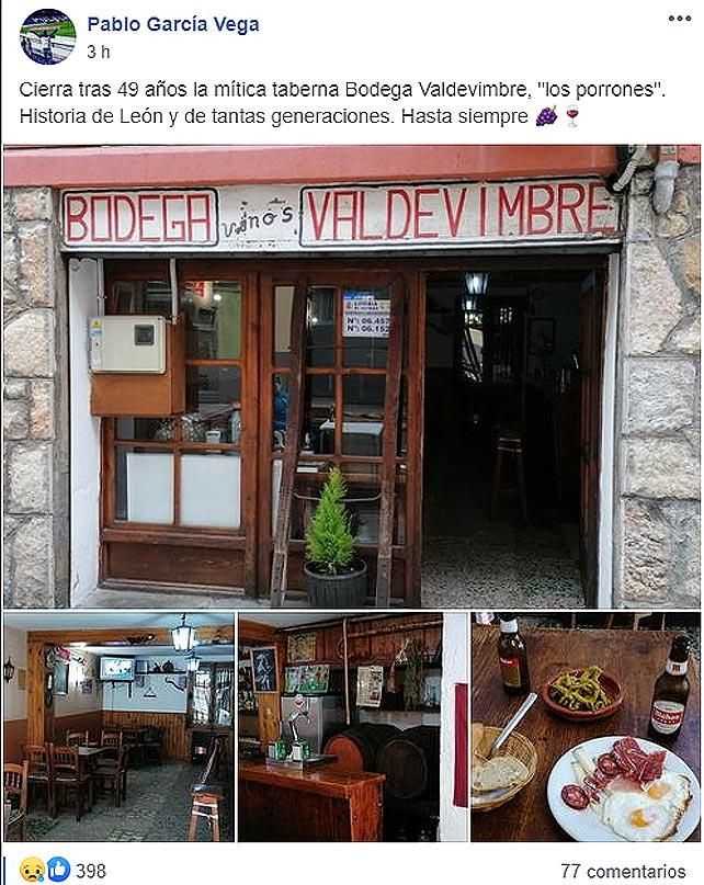 Se conoció en las redes sociales, como casi todo lo que suele ocurrir en los focos informativos populares alejados de la política y las cosas de los diarios: la Bodega Valdevimbre, la famosa de 'Los Porrones', echa el cierre tras casi medio siglo de Historia en León.