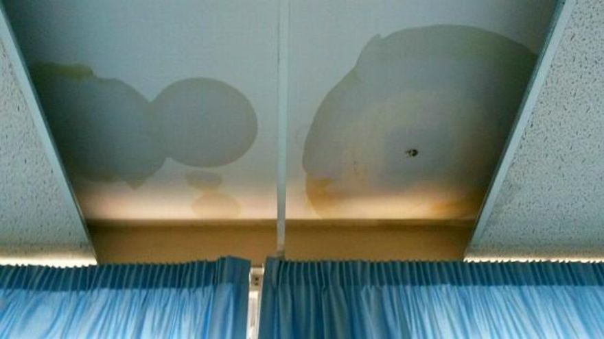 Las goteras se aprecian tanto en los espacios comunes, a la vista de todo el mundo, tales como pasillos, pero también en algunas aulas, donde por poner algún ejemplo ya se han cuantificado daños concretos en un piano que permanece en el aula más afectada. Aunque no es la única.