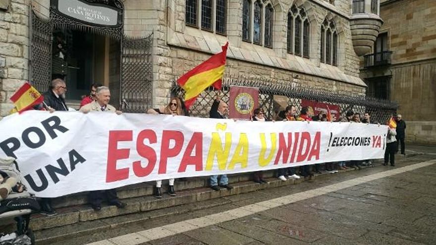 “Por una única bandera que representa hoy más si cabe los valores de nuestra patria. No queríamos que se quedase en casa nuestro rechazo, o todo este mercadeo que realiza el Gobierno con la unidad de nuestra nación, o dejar que dieran este mensaje sólo los que han tenido la suerte de trasladarse a Madrid, desde aqui también queremos dejar patente nuestra más firme defensa de la Constitución como ley suprema, y nuestra voluntad de su defensa en cualquiera de los ámbitos en los que se le esté dañando”, han defendido los portavoces del acto. “No daremos un paso a trás en la defensa de la unidad de nuestra nación, y no dejareremos que se comprometa la soberania nacional que recae n todos nosotros”, han añadido en el mismo manifiesto.
