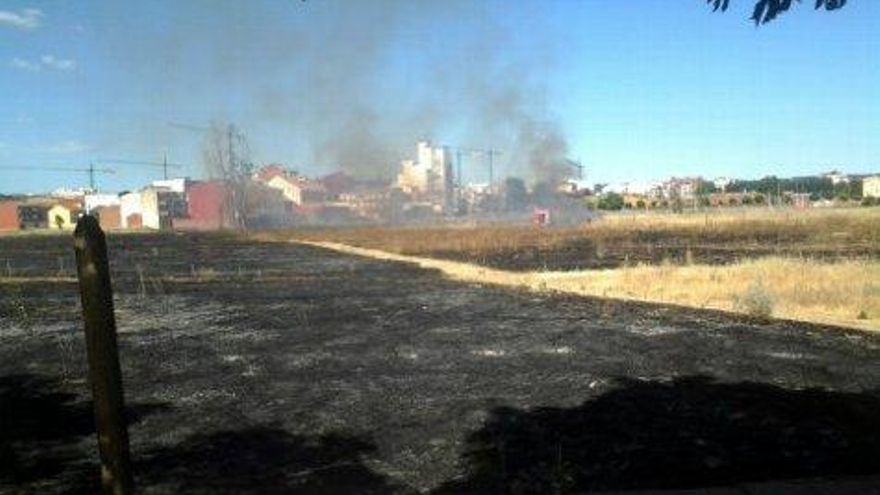 El fuego ha sido controlado y apagado a hacia las 18.30 horas, pero ha arrasado con una gran superficie de terreno tras la antigua Azucarera. No ha habido daños ni materiales ni humanos.