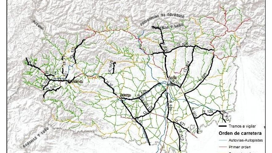 Mapa de controles de carretera en la provincia de León