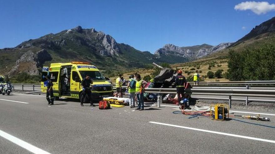 El suceso tuvo lugar a las 13.13 horas, en sentido Madrid, y al lugar de los hechos se desplazaron efectivos del Sacyl, de la Guardia Civil de Tráfico y un camión de bomberos de la capital, ya que se informó de que los viajeros habían quedado atrapados en el interior del vehículo.