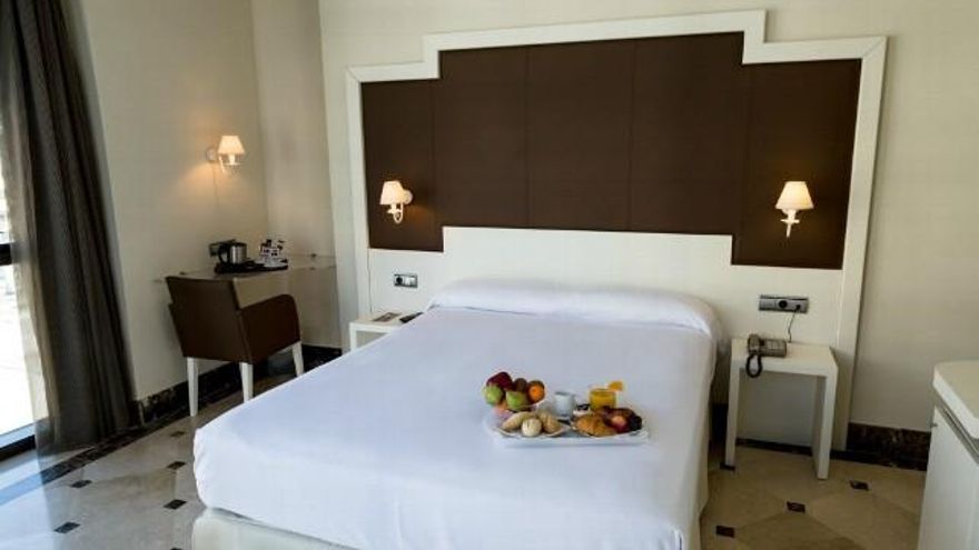 Las habitaciones disponen de placa de ducha o de bañera, y hay posibilidad de tener una habitación con bidé. Todas son exteriores y las vistas pueden ser a la glorieta, a la plaza Montevideo. Algunas de las habitaciones tienen vistas a la playa de La Victoria.