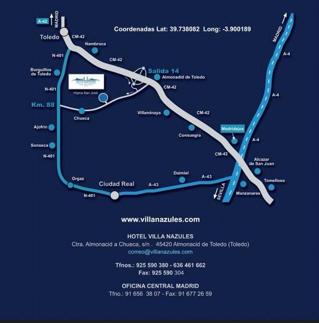 - Según se viene desde Madrid, sobre el Km. 68, se verán carteles a la izquierda con indicaciones para ir hacia Ciudad Real (CM-42).