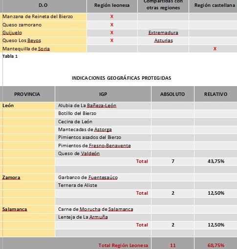 Si añadimos éstas a las IGPs exclusivas de la Región Leonesa, obtenemos que el 81,25% se encuentran mayoritariamente en las provincias de León, Zamora y Salamanca. Podemos por tanto empezar a deducir que, si la Región Leonesa es la que más sellos de DO e IGP dispone dentro de la comunidad, se debe al territorio, la producción y método de elaboración diferenciales que se aplican históricamente a los productos agroalimentarios; tratamiento que no se da en otras zonas del espacio comunitario ni del resto del país. Las comarcas y sus ríos (muchas de ellas integradas en Reservas de la Biosfera), la climatología, la forma de poblamiento, los sistemas de propiedad de la tierra y de los medios de producción, la estructura social y económica marcada por los Concejos y la tradición en las cocinas leonesas, entre otros, son factores que determinan desde la calidad en origen del producto, hasta el procesado de los alimentos a lo largo de la historia.