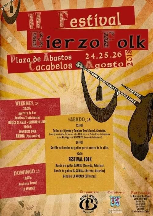 Llega la segunda edición del Festival Bierzo Folk, que se celebrará en la plaza de Abastos de Cacabelos los días 24, 25 y 26 de agosto 2018.