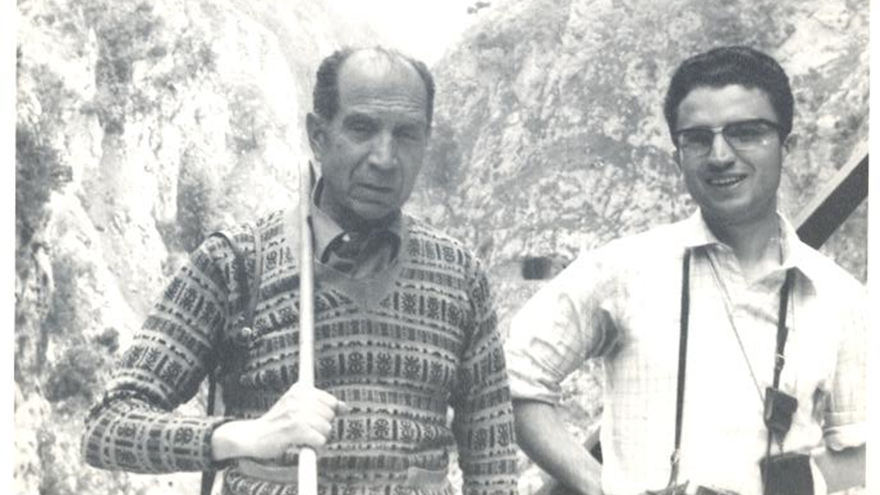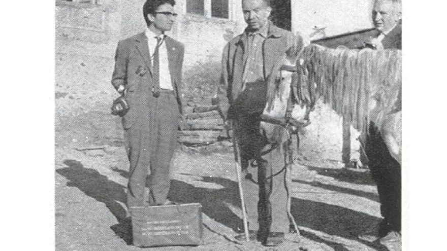 Vacunación en Picos de Europa. José Vega Villalonga. Jefe Provincial de Sanidad de León y Rafael Nájera, camino de Caín, andando desde la ermita de Corona. // © Cedida por Rafael Nájera