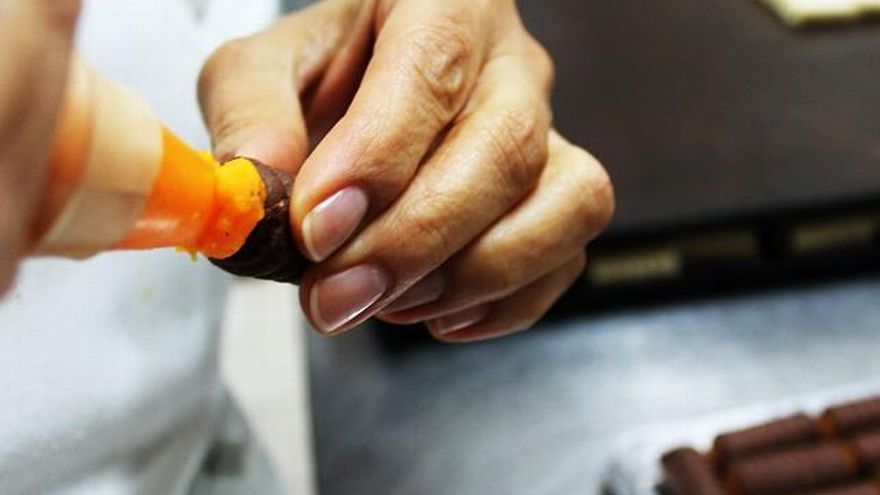 Elaboran manualmente cuatro variedades de huesos de santos con tres rellenos diferentes. “Tenemos turrón blanco, turrón de trufa, turrón de yema y turrón de praliné que van rellenos de trufa negra, trufa blanca y yema, pero también pueden ser macizos, sin relleno”, enumeran. Y puntualizan: “No usamos mermeladas ni escarchamos los huesos para no pasarnos de dulces y ser empalagosos, de esta manera se aprecian los sabores de cada una de las variedades”.