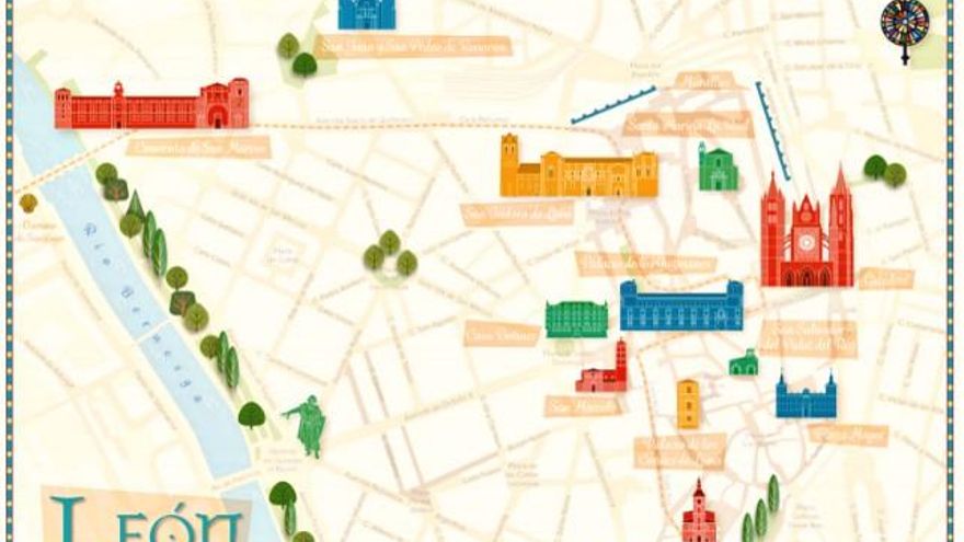 Pero el de las tapas no es el único trabajo de este profesional centrado en León. También resulta muy llamativo el Mapa Turístico ilustrado de León, que recoge de un vistazo muy artístico y también muy colorido por los monumentos más destacados que se deben visitar en la capital leonesa. Y cuyo enlace en la misma plataforma os dejamos también.