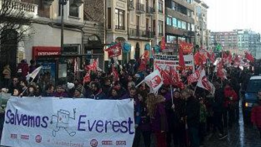 Los sindicatos de la comunidad, UGT, CCOO y USO han pedido a la Junta de Castilla y León “no dejar morir una empresa que tiene que seguir siendo bandera de esta comunidad”. Además, han animado a la sociedad a seguir luchando por su continuidad asegurando que “no sólo se trata de un problema de Everest, sino de toda la sociedad leonesa”. “NO debemos seguir viendo cómo se cierran las empresas de nuestra tierra”, ha declarado Vicente Andrés - Secretario de Acción Sindical de CCOO Castilla y León, minutos antes de que la manifestación emprendiera su andadura por las calles de la capital leonesa.