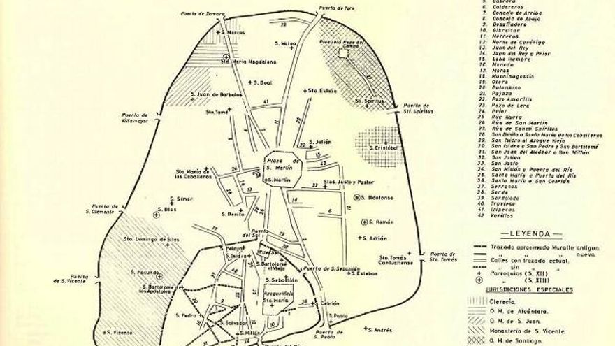 Según la web Murallas de las Ciudades Patrimonio de la Humanidad, “la Cerca Vieja, primer recinto defensivo medieval de la repoblación que siguió de manera muy aproximada el trazado del castro prerromano de Salmantica y perdura en los frentes occidental, meridional y oriental del teso de las Catedrales en espacios tanto públicos como privados”. La levantó Alfonso VI de León tras conquistar Toledo y “conserva cinco torreones y sus fábricas heterogéneas son el testimonio de las numerosas reformas y reconstrucciones que ha sufrido a lo largo de la historia. Tuvo cinco puertas de acceso a la ciudad, hoy desaparecidas: la del Río, cuyo arco ojival fue derribado en el siglo XIX; el postigo ciego que va a dar al puente; la de Alcázar, al sur; la del Sol al norte y la de San Sebastián, al este”.