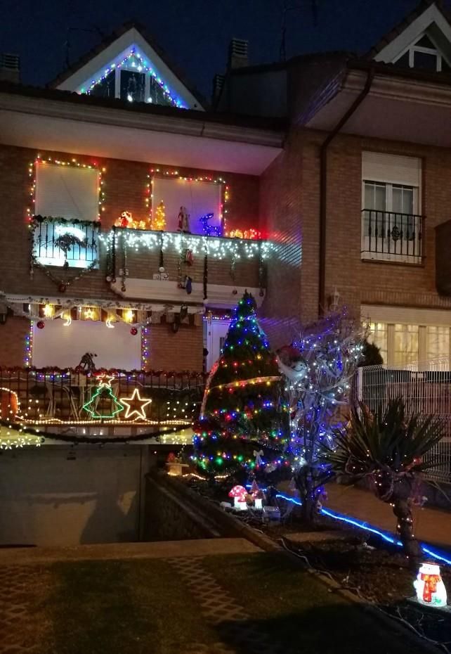 Una de estas viviendas, que parece sacada de una película americana navideña, se encuentra en La Virgen del Camino, y está llena de detalles que evocan la Navidad, como una época feliz y de celebración familiar. El frente de este chalet llama la atención de viandantes y vecinos, puesto que las luces de diversos colores colocadas en las ventanas, barandillas y fachada de la vivienda iluminan un buen tramo de la calle donde está ubicada.