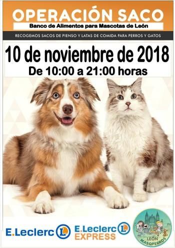 Nueva edición de la 'operación saco', destinada a recoger alimentos para mascotas (gatos y perros). En esta ocasión, será el día 10 de noviembre en el Hipermercado E.Leclerc de Trobajo del Camino y en el Supermercado E.Leclerc Express en León.
