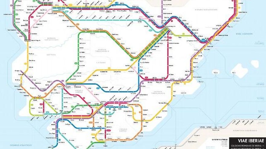 Hoy, una serie de apasionados de los mapas y la infografía han ido recreando por dónde iban las vías romanas principales por todo el imperio. Llegando a hacer maravillas como el mapa tipo plano de metro Viae Iberiae que diseñó Shasha Trubetskoy que se puede ver aquí abajo (y aquí se puede descargar en mucha más resolución).
