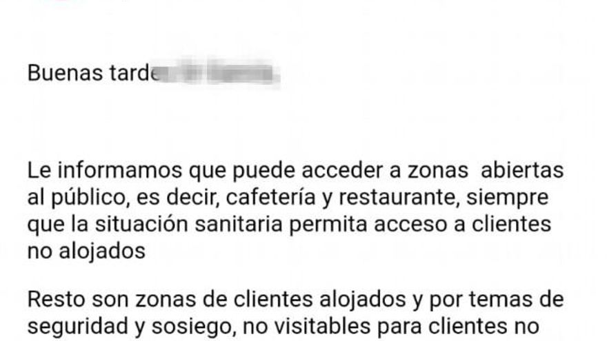 Tampoco en la propia web oficial de la empresa pública se detalla en sitio alguno que provisionalmente se impidan las visitas de clientes no alojados a causa de la pandemia sanitaria, como tampoco lo mencionan específicamente desde la compañía cuando se les pregunta por la posibilidad de realizar tales visitas.