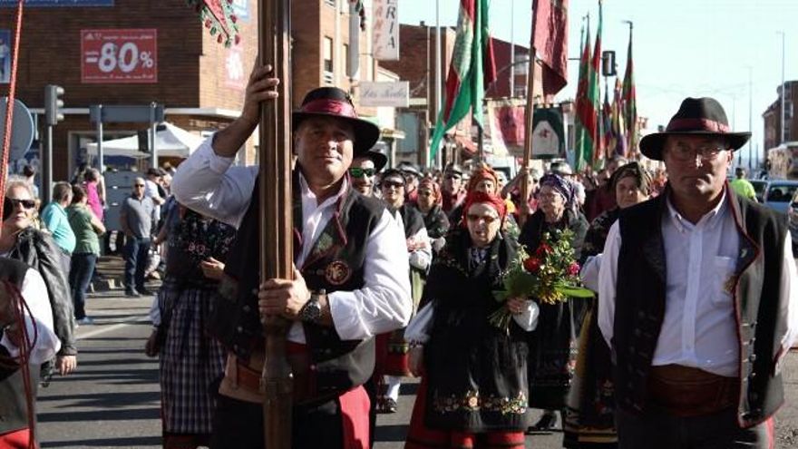 Tras haber realizado una romería colorida y musical, que pacientemente se estiraba por la carretera Nacional 120 ante el ahínco de los portadores de los pendones, poco antes de las 12.00 horas esta 'comitiva' en honor a San Froilán llegaba a la explanada frontal del santuario, donde se celebró la tradicional misa, con presencia de las autoridades. Pocas faltaron a la cita, que tampoco se quisieron perder los más fieles romeros.