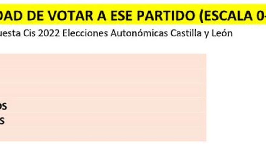 Entre las personas que están indecisas respecto a su voto en esas elecciones y tienen como una posible opción UPL el porcentaje que baraja como su otra opción al PSOE duplica al que se da respecto del PP. Apenas el CIS encuentra personas que dudan entre votar UPL y hacerlo por Ciudadanos o por Unidas Podemos.