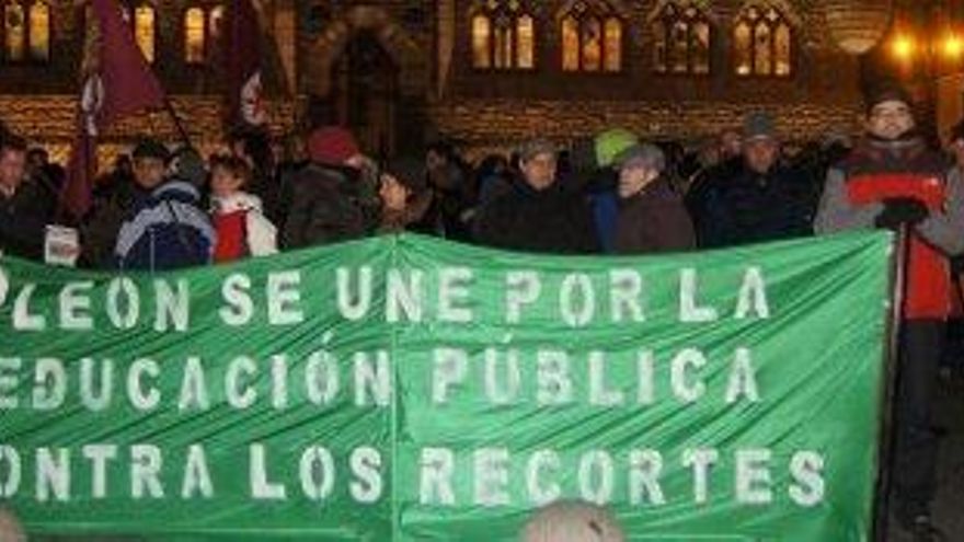 La defensa de la educación pública como pilar fundamental del estado de bienestar, el rechazo a los recortes impuestos desde la Junta de Castilla y León y el cuestionamiento de las últimas medidas aprobadas por el Gobierno en materia educativa han sido los objetivos de la manifestación celebrada este jueves en la Plaza de Botines.