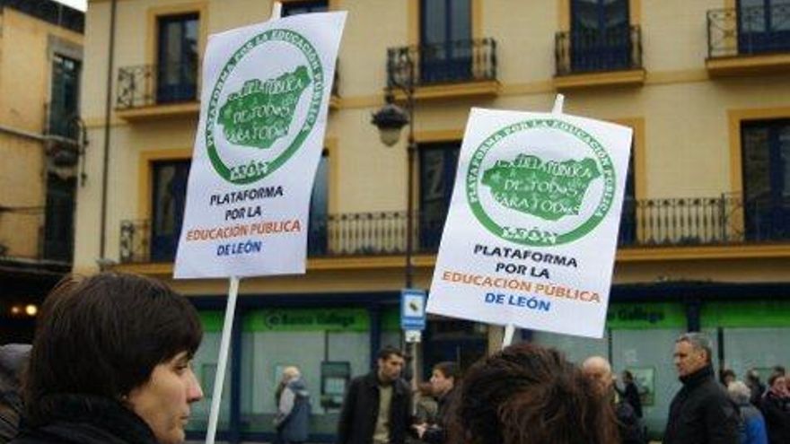 La Plataforma por la Educación Pública de León ha celebrado un nuevo 'Jueves Verde' contra los recortes que atacan a la calidad de la educación. Bajo el lema 'Estudiantes, profesorado y familias unidos por la Educación Pública', alrededor de medio milllar de personas se ha concentrado frente a Botines para defender la educación pública y rechazar los recortes en esta área.