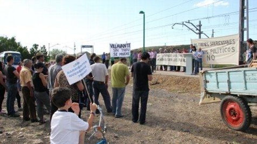 Más de 200 personas provenientes de la práctica totalidad de las localidades de la provincia afectadas por la supresión de líneas y frecuencias de ferrocarril se congregaron en la tarde de este miércoles en una marcha hacia la estación de Barrientos (Valderrey).
