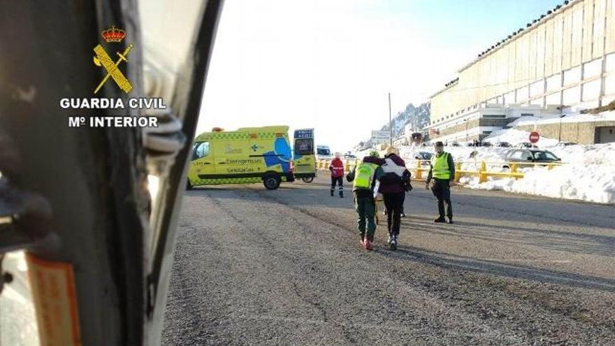 La mujer fue evacuada hasta el aparcamiento de la estación invernal de San Isidro, donde fue transferida a una ambulancia.
