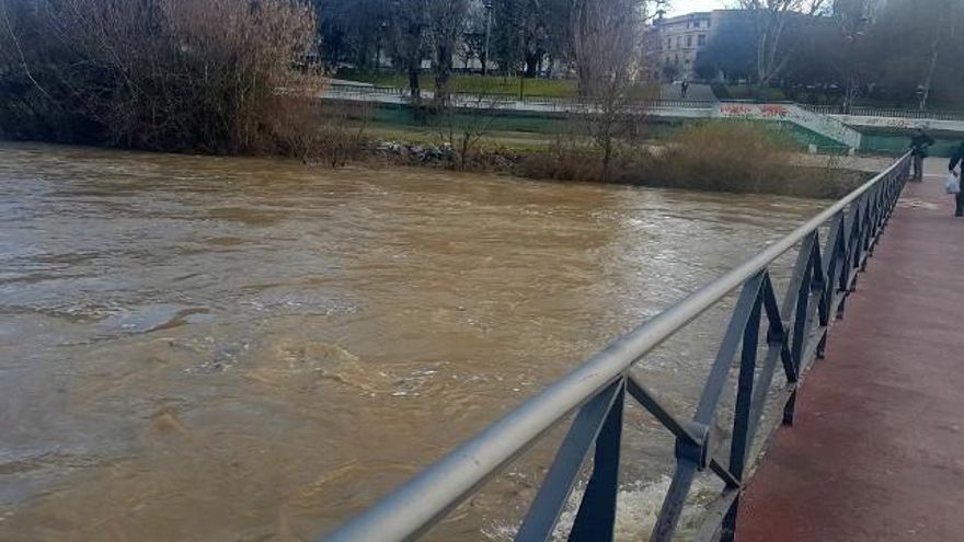 El río Bernesga a su paso por León, en alarma tras multiplicar por 26 su caudal en las últimas 24 horas