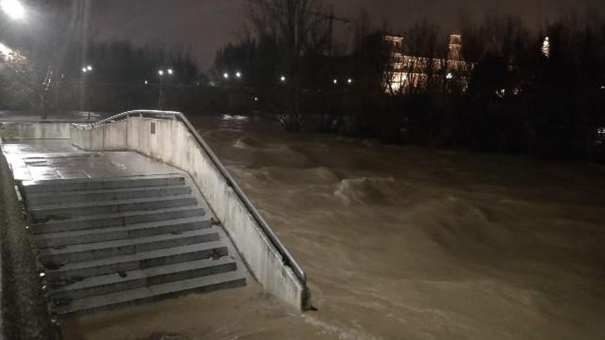 El río Bernesga se desborda a su paso por León e inunda parte del Paseo de Salamanca