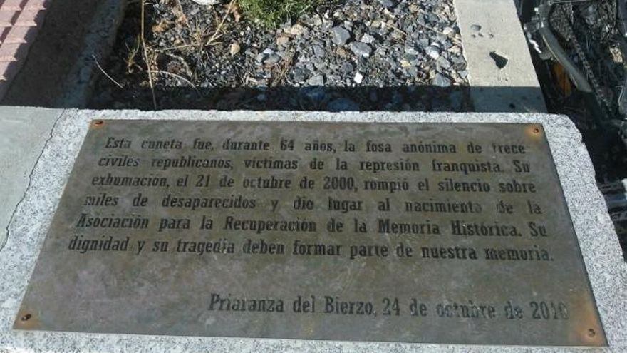 En esta ruta de cuarenta kilómetros y un desnivel positivo de mil metros, encontramos en Priaranza del Bierzo el lugar donde fueron fusilados en 1936 los conocidos como “los trece de Priaranza”, entre los que se encontraba Emilio Silva Faba. Esta fosa común, exhumada en octubre del año 2000 y siendo la primera en hacerlo con métodos científicos en el Estado español, dio lugar al nacimiento de la Asociación para la Recuperación de la Memoria Histórica, la cual cifra en 114.226 el número de desaparecidos en el Estado, alcanzando la segunda posición a nivel mundial, solo por detrás de la Camboya de Pol Pot. Según los últimos datos oficiales, el número de muertos o desaparecidos en la dictadura chilena de Augusto Pinochet es de 3.065. En El Bierzo, la cifra desde el dieciocho de julio de 1936 hasta el dos de mayo de 1951, fecha en la que asesinan a Manuel Girón Bazán -como relata el libro La agonía del león, de Carlos G. Reigosa, la cifra según datos de la ARMH es de 1.020 personas.