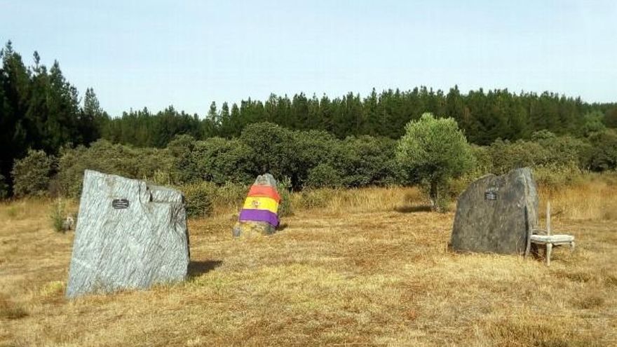 En esta ocasión recorreremos sesenta kilómetros con un desnivel positivo de ochocientos metros. El primer punto de memoria es la fosa de Fresnedo, en la que fueron fusilados el uno de septiembre de 1936 Antonio García Colinas, Pascual García Colinas, Santiago García Arroyo, Cesáreo Fernández Arroyo y Florentino Enríquez Calvo. La exhumación de sus cuerpos se realizó en julio de 2002, como puede verse en el documental Siempre días azules, de Israel Sánchez-Prieto.