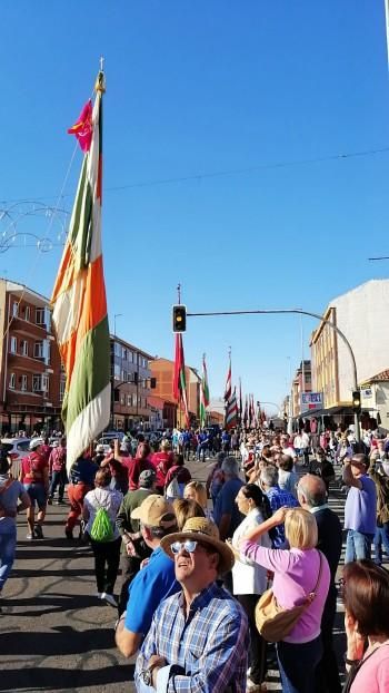 La salida del desfile de pendones, como marca la tradición, se ha realizado desde el parking del Hipermercado E. Leclerc a las 10.00 horas con la entrada de los primeros pendones a La Virgen del Camino a las 11.00 horas de la mañana, seguidos por los carros de vacas, caballos y burros que se han ido colocando en la explanada de la Basílica de La Virgen del Camino. A las 12.00 horas ha comenzado la misa de campaña en ofrenda a la Virgen del Camino, Patrona de León.