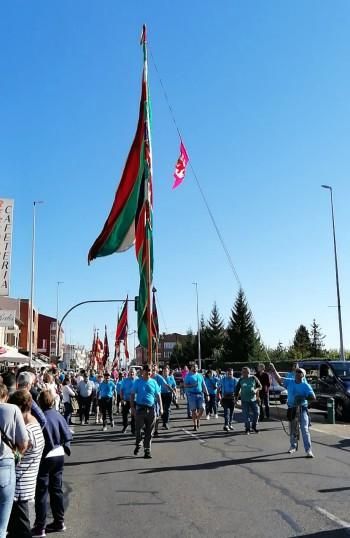 Tras haber realizado una romería colorida y musical, que pacientemente se estiraba por la carretera Nacional 120 ante el ahínco de los portadores de los pendones, poco antes de las 12.00 horas esta 'comitiva' en honor a San Froilán llegaba a la explanada frontal del santuario, donde se celebró la tradicional misa, con presencia de las autoridades. Pocas faltaron a la cita, que tampoco se quisieron perder los más fieles romeros.