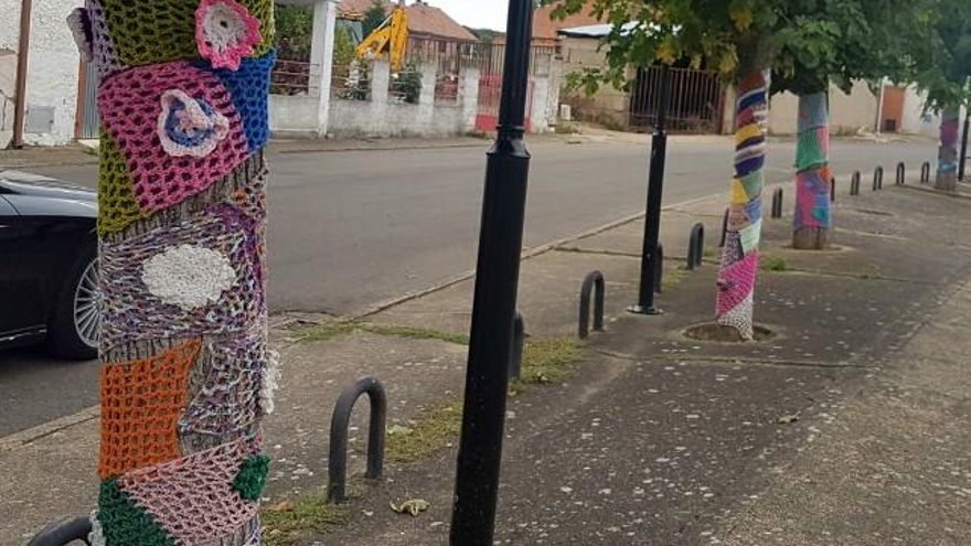 Los árboles, las farolas, los bancos, las vallas o cualquier otro elemento del mobiliario urbano, nada se libra de ser decorado con tejidos de lana de diferentes colores y formas. Este movimiento, denominado 'urban knitting', que reivindica que todas las cosas pueden ser tejidas o cubiertas con lana también ha llegado a Sariegos.