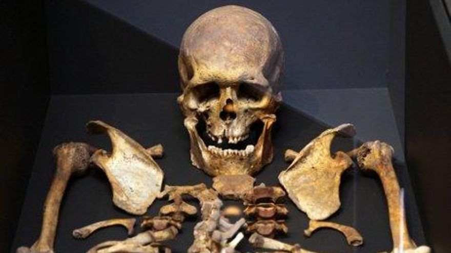Peio García / ICAL La Braña 1, el 'leonés' moreno de ojos azules de hace 7.000 años que fue encontrado en 2006 por un equipo de espeleólogos en una cueva del municipio leonés de Valdelugueros. Se expone en el Museo de León