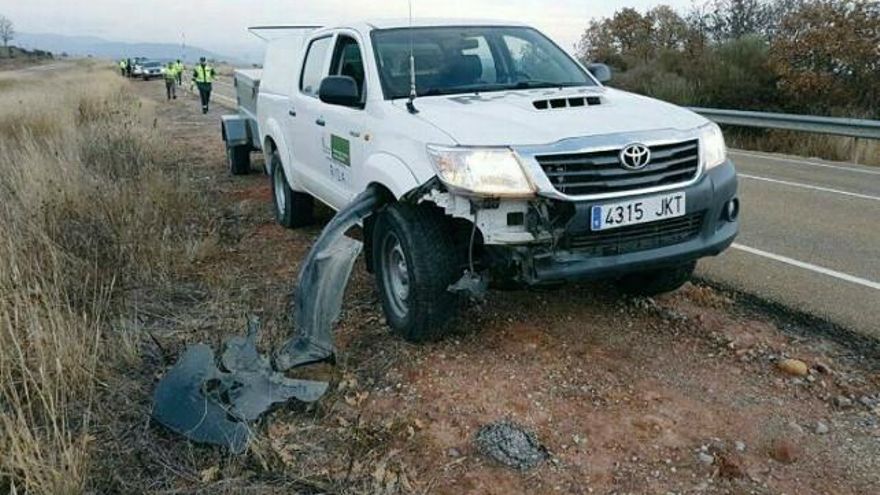 En la imagen el vehículo que, presuntamente, impactó contra el lobo que acabó muriendo.