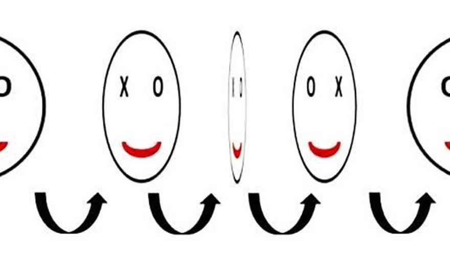 Pero sorprendentemente su cuerpo se ha transformado: sus partes derecha e izquierda han cambiado de lugar. Y esto solo es posible si ha viajado a la cuarta dimensión, como explica el propio Wells, por analogía con lo que ocurre al pasar de la dimensión 2 a la 3: “Si se recorta una figura de papel, cualquier figura con un lado derecho y otro izquierdo, se puede cambiar su forma invirtiéndola”. Por ejemplo, para invertir una figura plana, como una cara, es preciso hacerlo en el espacio tridimensional, no se puede en el bidimensional.