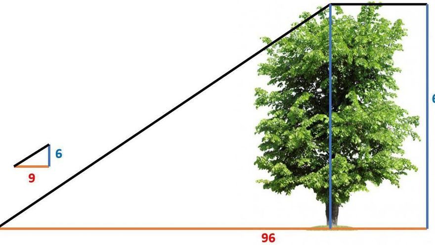 Aplicando el teorema de proporcionalidad de triángulos de Tales [si en un triángulo se traza una línea paralela a cualquiera de los lados, se obtiene un triángulo dado], el detective logra encontrar el punto definido por la sombra del olmo.