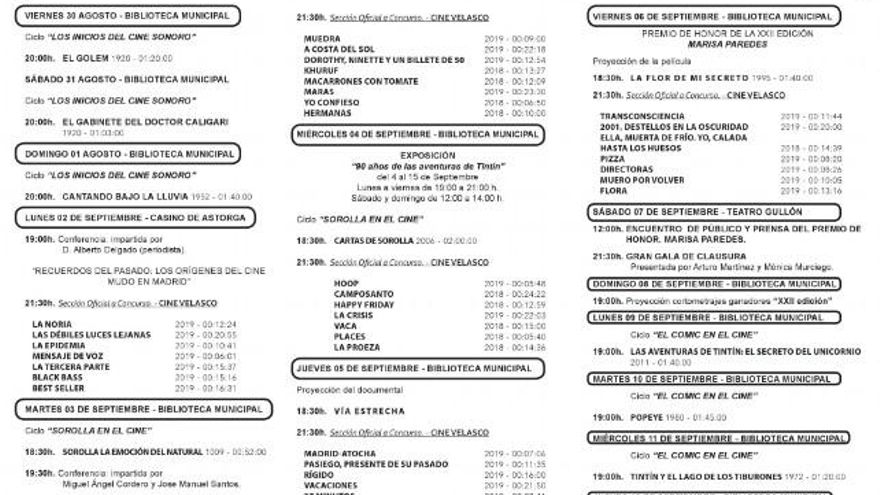 Otro año más vuelve el Festival de Cine 'Ciudad de Astorga', en su 22 edición competirán un total de 37 cortos que intentarán hacerse con el primer premio, valorado en 4.000 euros. Entre los días 2 y 6 de septiembre se presentarán los cortos en el cine Velasco todos los días desde las 21.30. La clausura se celebrará el sábado 7 de septiembre a partir de las 21.00 y la presentarán Arturo Martínez y Mónica Murciego.