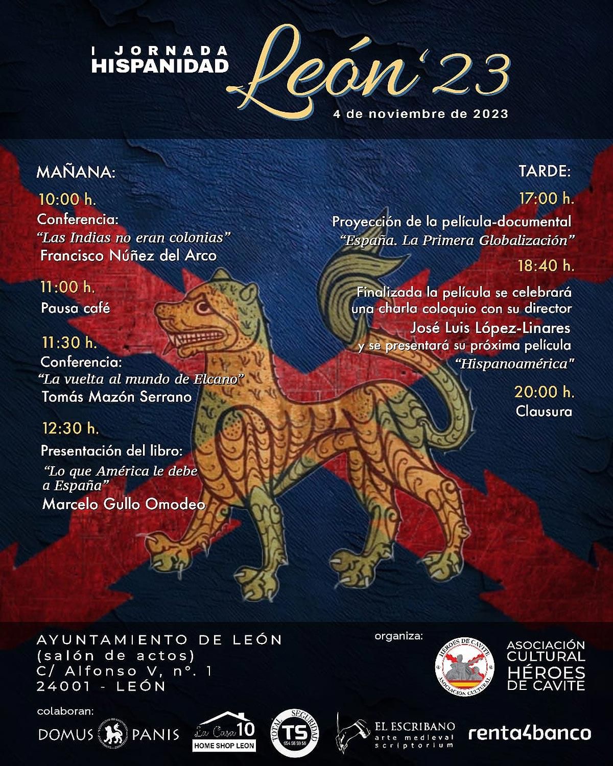 El Auditorio del Ayuntamiento de León (entrada por Alfonso V) acogerá la primera Jornada de Hispanidad en León, programada por la Asociación Héroes de Cavite, durante todo este sábado 4 de noviembre. La misión de esta asociación es divulgar la historia hispánica desde 1492 hasta 1898 y desmentir las falsedades de la Leyenda Negra, sin caer en un enfoque idealizado rosalengendario. La jornada dará inicio a las 9.30 de la mañana y la entrada es libre y gratuita.