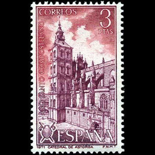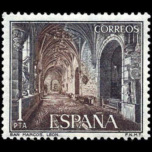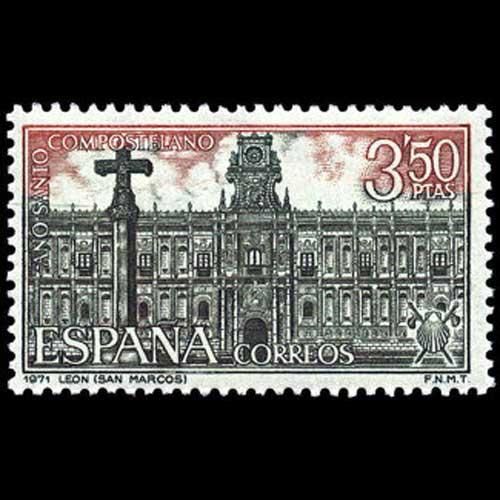 Esta serie de sellos incluye 5 litografías dedicadas a la provincia de León: un mapa del Camino Francés, la iglesia de Santo Tirso de Sahagún, la fachada plateresca del convento de San Marcos de León, la catedral de Astorga y la iglesia de Santiago Apóstol en Villafranca del Bierzo.