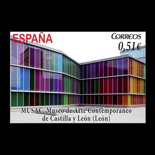 Uno de los sellos de esta emisión conjunta para celebrar los 400 años de relaciones entre ambos países incluye en la fachada del Museo de Arte Contemporáneo de Castilla y León (Musac), con sede en la ciudad de León.