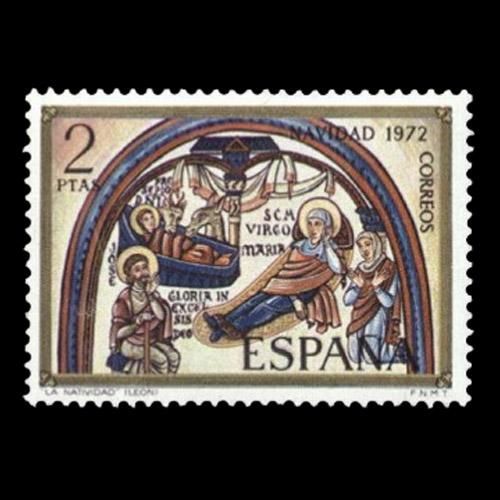 Estos dos sellos, de la serie Navidad 1972, nos muestran sendos frescos de los existentes en el Panteón Real de San Isidoro de León, la Capilla Sixtina del Arte Románico.