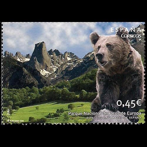 Dentro de esta serie, y aunque la imágen representa el entorno del Picu Urriellu (Naranjo de Bulnes) en Asturias, también muestra un ejemplar de oso pardo, habitual en la montaña leonesa.