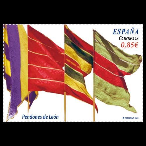Sello dedicado a los tradicionales pendones concejiles leoneses, que iniciaron hace pocas fechas su andadura final para convertirse en Bien de Interés Cultural de carácter inmaterial.