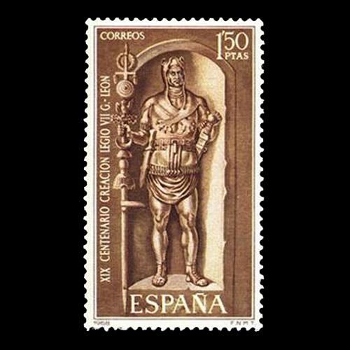 Serie de tres sellos dedicados al XIX Centenario de la fundación de la Legio VII Gémina. El primero de ellos reproduce la estatua de Pintaius, astur transmontano que sirvió como signifer - suboficial encargado de portar el signum o estandarte de cada centuria - de la Cohors V Asturum. Su lápida fue hallada cerca de la actual Bonn.