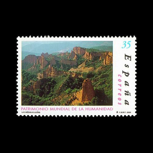 Sello conmemorativo de la declaración por parte de la UNESCO del paraje de las Médulas como Patrimonio de la Humanidad.